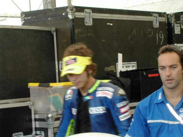 ぶれ気味のロッシ、すごい人だかりでサインもそこそこに逃げていった
