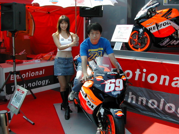 今年はニッキーのマシンにまたがった、レースクイーン付き