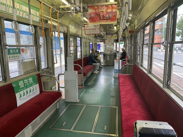 シートの色といい布の感じといい当時を思い出させる。窓の外の棒もそのまんま。